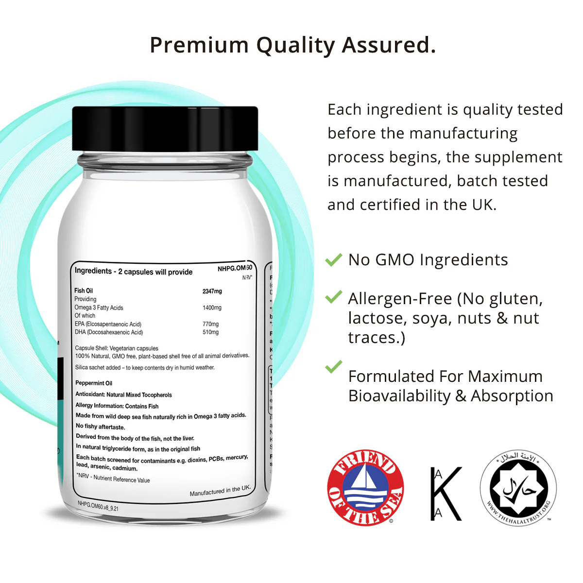 NHP Omega 3 Support contains ultra pure wild deep sea fish oil which is rich in Omega 3 fatty acis with high levels of EPA and DHA.