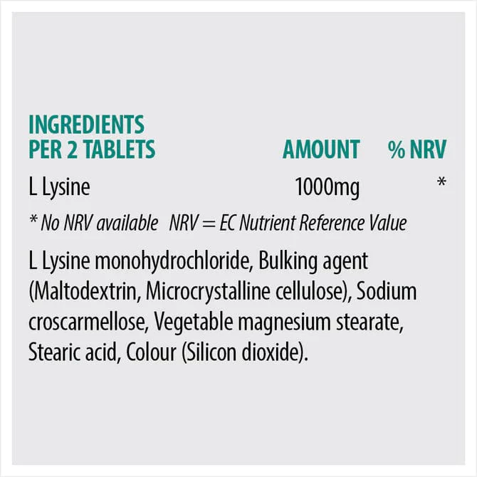 L Lysine is most commonly used for the treatment and prevention of colds sores and mouth ulcers. L Lysine inhibits normal replication of Herpes simplex virus (HSV), shortening the normal course and duration of the disease. L Lysine cannot be manufactured in the body. It is therefore vital that adequate amounts be included in the diet.