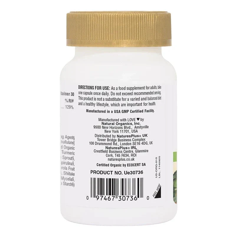 Organic Iron providing 18mg from certified organic curry extract (murraya koenigii), formulated in a base of 20 organic whole fruits, vegetables, mushrooms, algae and herbs.